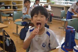 作業を頑張った児童全員に、お昼ご飯のあと保護者会からのプレゼント、チューペットが配られ、美味しくいただきました。