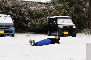 少し積もった雪に大興奮の子どもたち。休み時間になると外に飛び出して雪遊びを楽しみました。