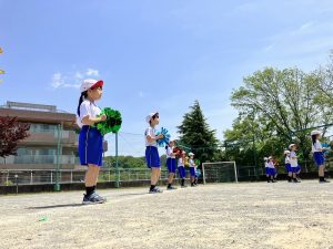 1年生と2年生も校庭で練習していました。立ち位置や動きなどもしっかり覚えてきました。本番まで楽しく練習できますように。