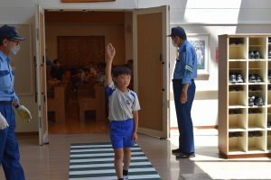 DVDで横断歩道の渡り方や、なぜ手を挙げるのかなどを学び、実際に手を挙げて右と左を見ながら横断歩道を渡る練習をしました。