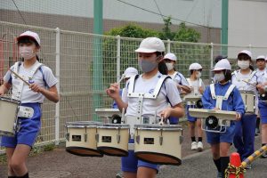 5年生と6年生は鼓笛の練習です。歩きながら楽器を演奏するのは大変そうでしたが、堂々と演奏していました。